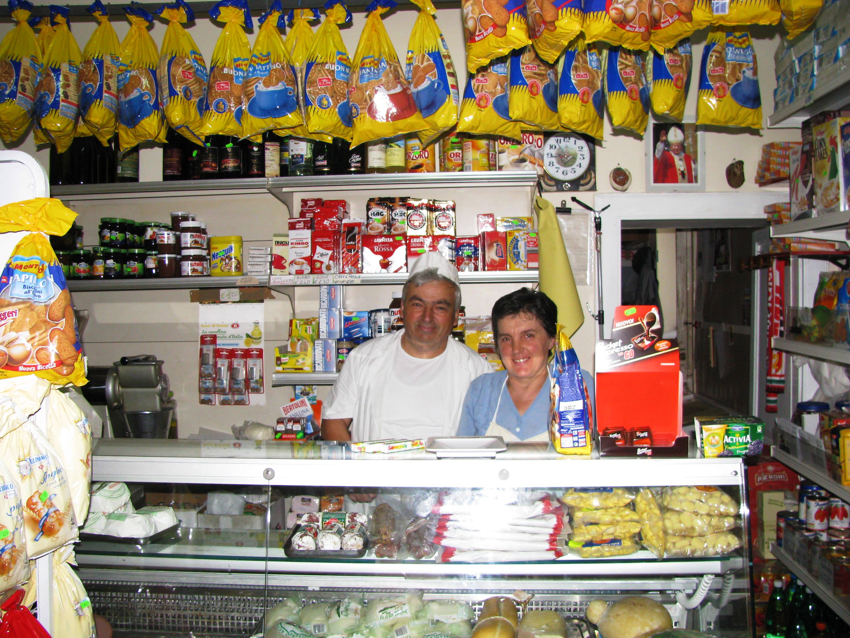 Overigens ging ik die zomer van 2009 de volgende ochtend vroeg voor de laatste keer naar het kruideniertje waar ik twee weken lang mijn boodschappen had gedaan. Ook hen vertelde ik dat wij weer weggingen en in een moment van vrijmoedigheid die mij niet echt eigen is, maar die nu opgeroepen werd door de weemoed van het weggaan en het gevoel van urgentie om dat wat ik achterliet en ging missen vast te leggen,vroeg ik hen of ik een foto van hen en hun winkel mocht maken. Ze hadden daar geen bezwaar tegen. De man haalde voor de gelegenheid zijn papieren kruideniersmutsje tevoorschijn, zette dat op zijn hoofd en met z’n tweeën poseerden zij voor mij achter de toonbank van het volgestouwde winkeltje.
