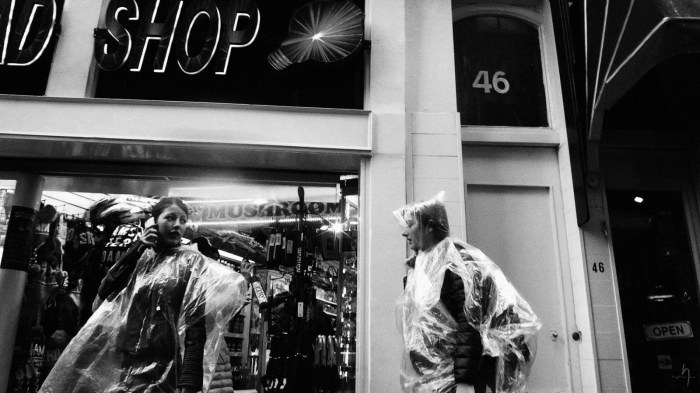 Hoeveel mensen staan er op deze foto? Pas op, zeg niet te snel twee. Behalve de twee vrouwen in regenponcho zijn dat er namelijk nog twee. Allereerst is er een derde vrouw, die grotendeels schuil gaat achter de linker poncho. We zien een stukje van haar jas, die lang is en doorgestikt, een licht geheven arm … Beeldrijm 4: Ceci n’est pas la réalité verder lezen